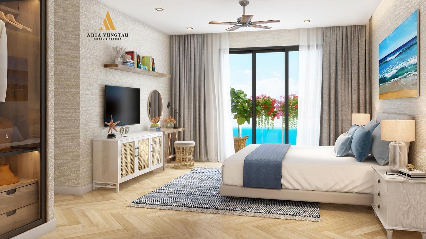 Aria Vũng Tàu có quy mô hơn 5,4ha với 3 tòa tháp căn hộ, 1 tháp khách sạn và khu thấp tầng gồm 36 biệt thự nghỉ dưỡng nằm trong khuôn viên compound khép kín với đầy đủ tiện ích, dịch vụ cùng bãi biển riêng. Với những lợi thế về vị trí, quy hoạch và thiết kế, dự án Aria Vũng Tàu hiện là một trong những cái tên đáng chú ý trên “bản đồ” second home biển Vũng Tàu dành cho nhà đầu tư.