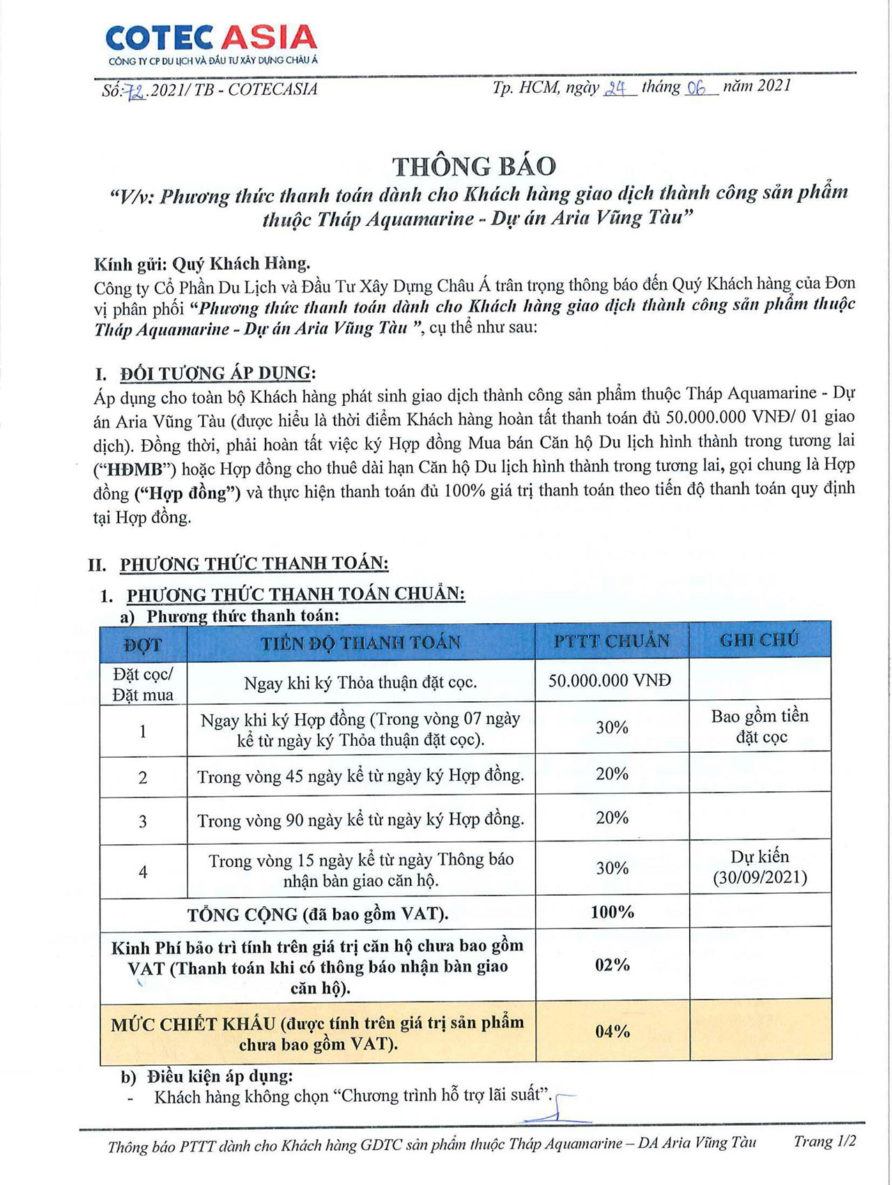 - Chủ đầu tư: Chủ đầu tư Cotec Asia