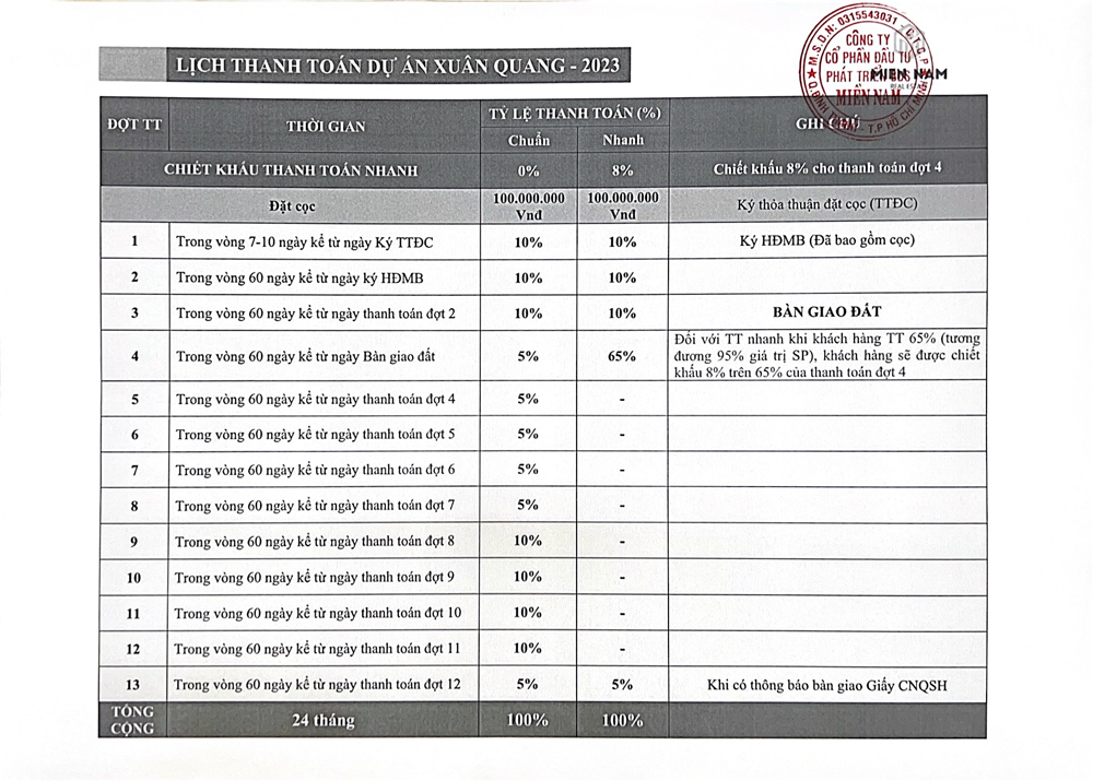 | Chủ đầu tư | Công ty cổ phần Xuân Quang |