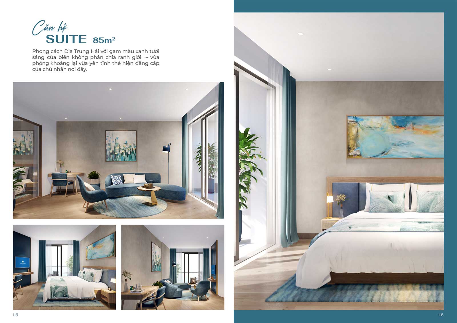 Phân khu căn hộ nghỉ dưỡng – căn hộ nghỉ dưỡng của Charm Resort Long Hải với 972 căn được thiết kế theo phong cách Địa Trung Hải mang nét hiện đại, sử dụng kính và thép làm điểm nhấn mở rộng không gian, giúp chủ nhân thưởng lãm trọn vẹn hương vị biển cả từ ngay ban công.
