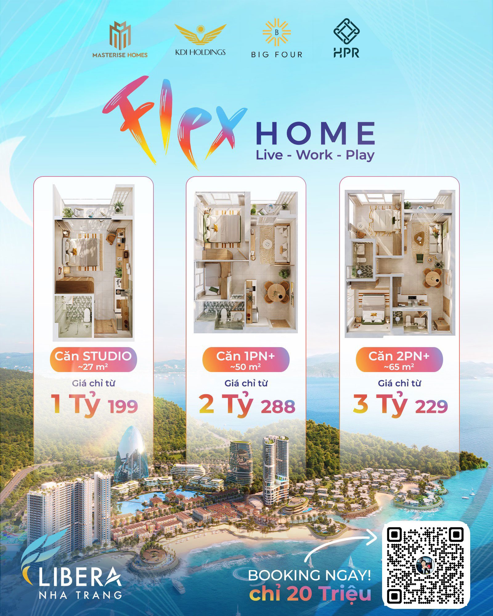 Giá bán chỉ từ 1,5 tỷ đồng, khách hàng đã có thể sở hữu căn hộ Flex Home Libera dưới chân nhà là biển, sau lưng là núi, bên cạnh là bán đảo tỷ phú 6 sao Gran Meliá. Một sản phẩm nghỉ dưỡng đáng đầu tư và sở hữu nhất tại Nha Trang hiện nay.