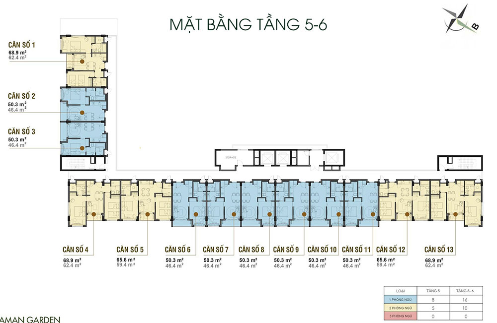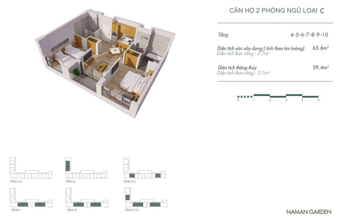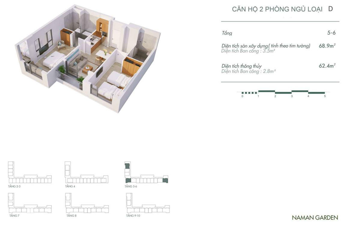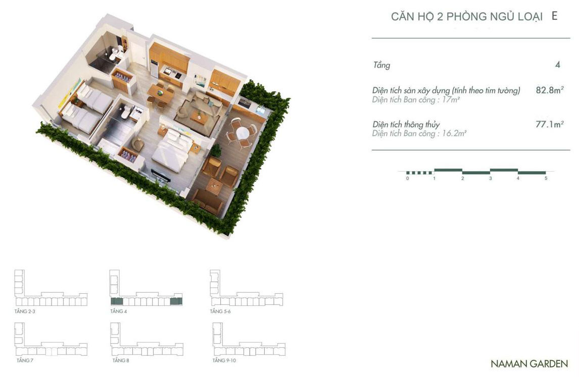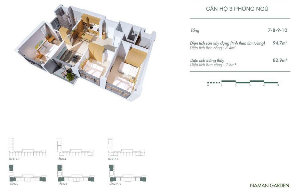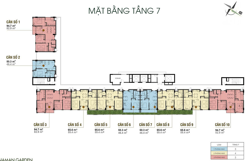 Naman Garden Đà Nẵng gồm 99 căn hộ từ 1-3 phòng ngủ