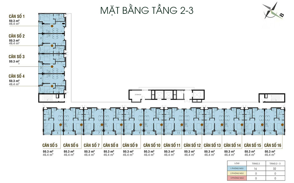- Căn 1 PN: 50,3m2 – Giá bán : 2,3 tỷ