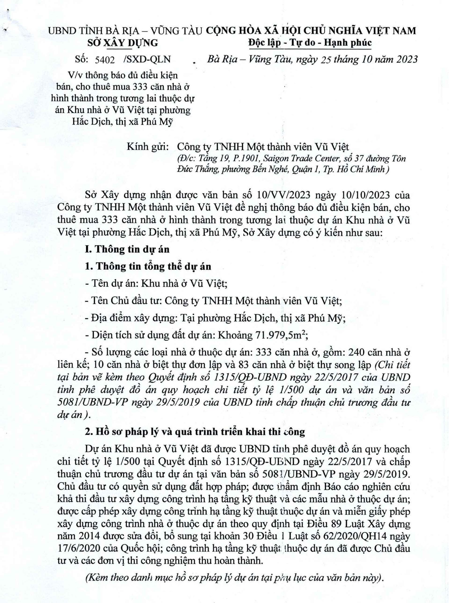 – Đủ kiều kiện bán 333 căn nhà hình thành trong tương lai thuộc dự án Vũ Việt