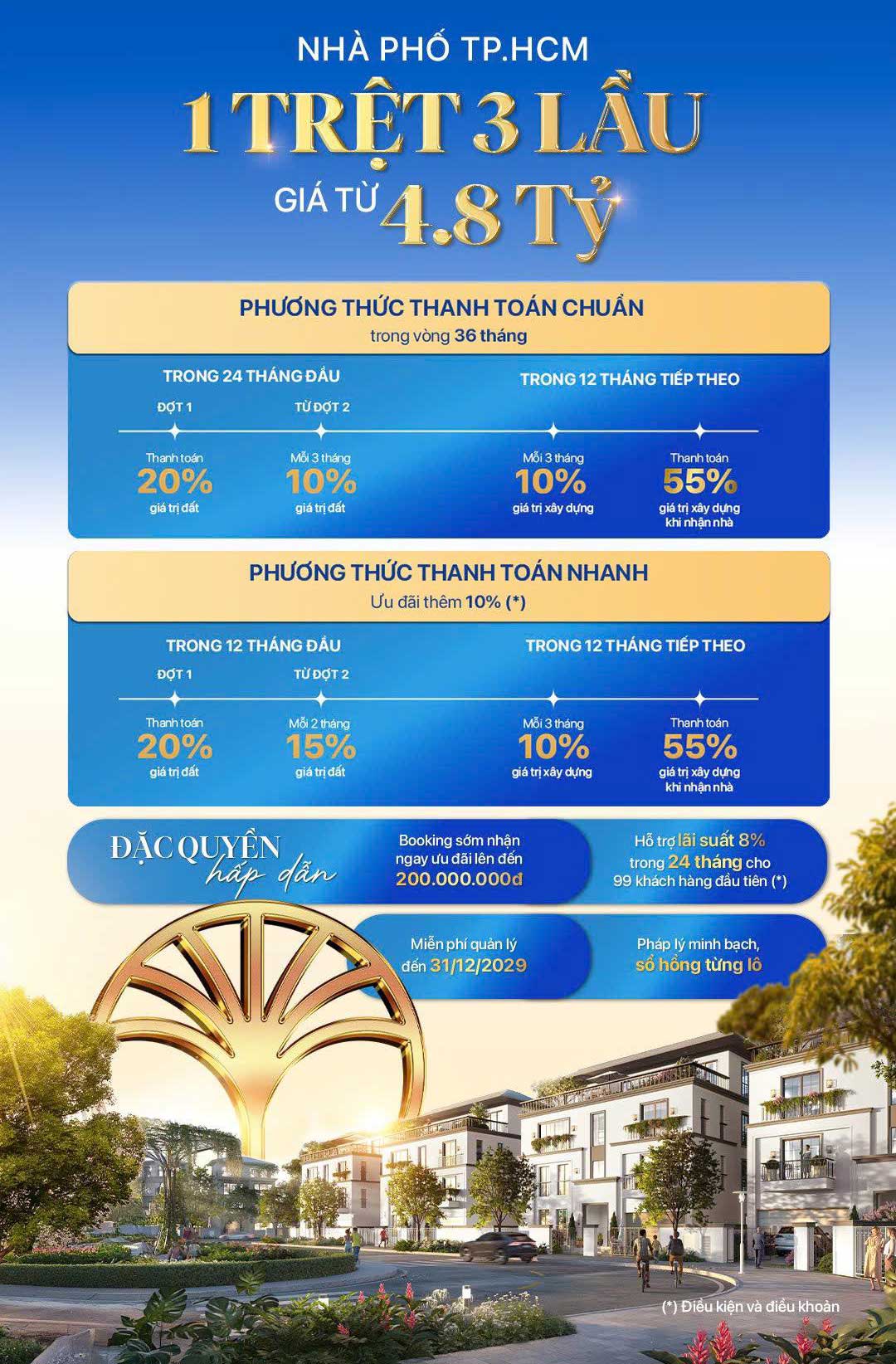 ✔️ Trong 12 tháng tiếp theo: Thanh toán 10% giá trị xây dựng (nhà) mỗi 3 tháng; Thanh toán 55% giá trị xây dựng (nhà) khi nhận nhà.